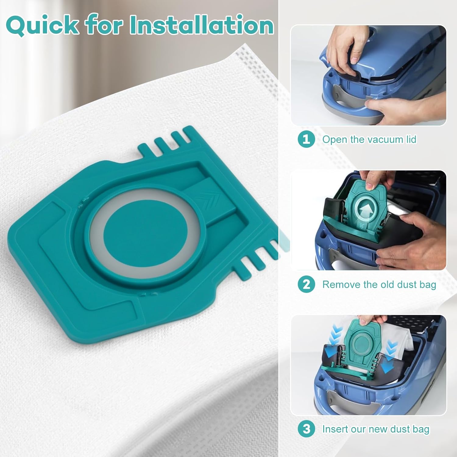 Our vacuum cleaner dust bag is easy to install, with powerful cleaning power and effect, and no dust leakage. It is recommended to replace the filter and bag regularly to maintain the performance of the vacuum cleaner and prolong its life.