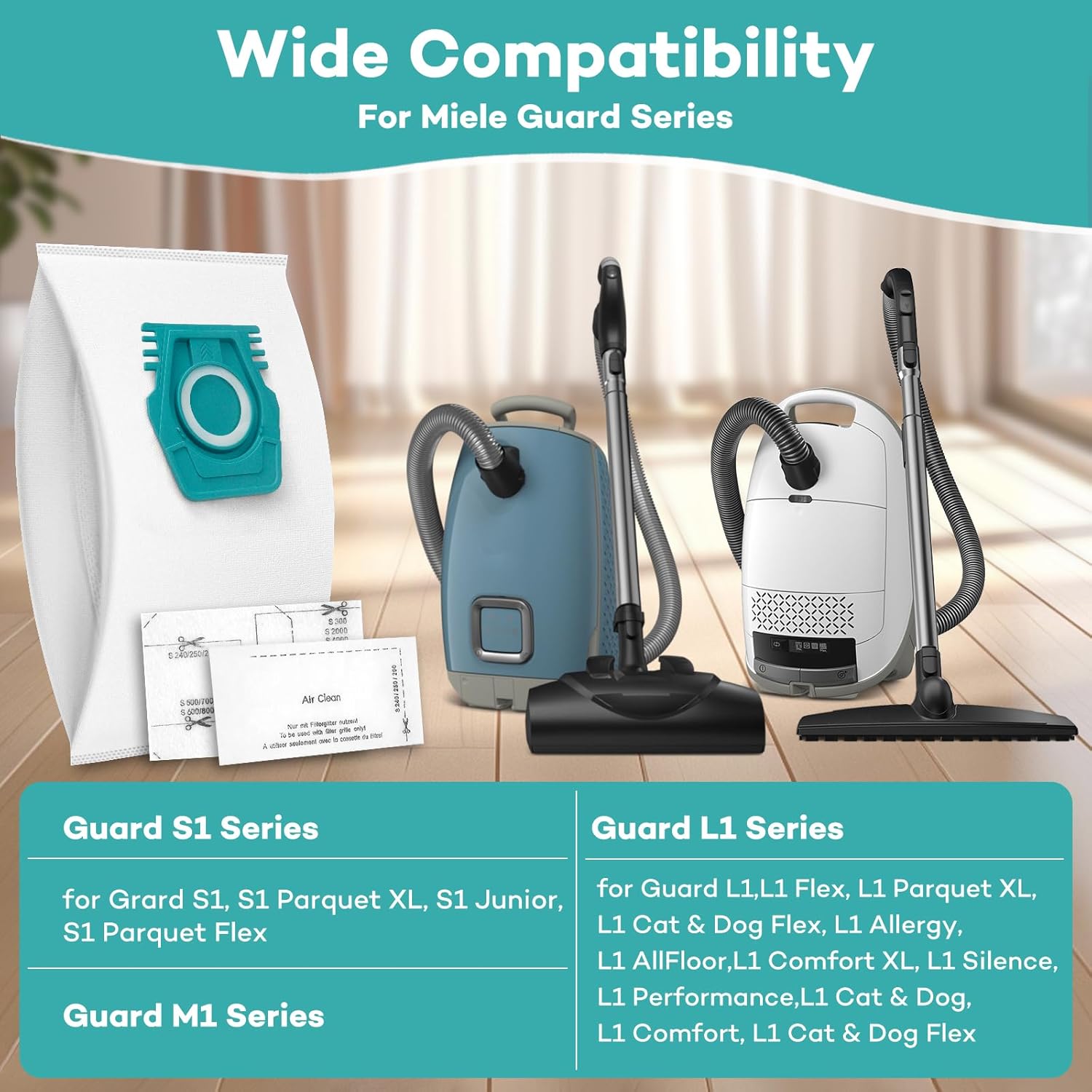 Compatible with Guard L1, L1 Flex, L1 Parquet XL, L1 Cat & Dog Flex, L1 Allergy, L1 AllFloor, L1 Comfort XL, L1 Performance, L1 Electro and compatible with Guard S1, S1 Parquet XL, S1 Junior, S1 Parquet Flex series Vacuum TU canister vacuum cleaners with bags. This dust bag works just as well as the original, with precise fit and easy installation.