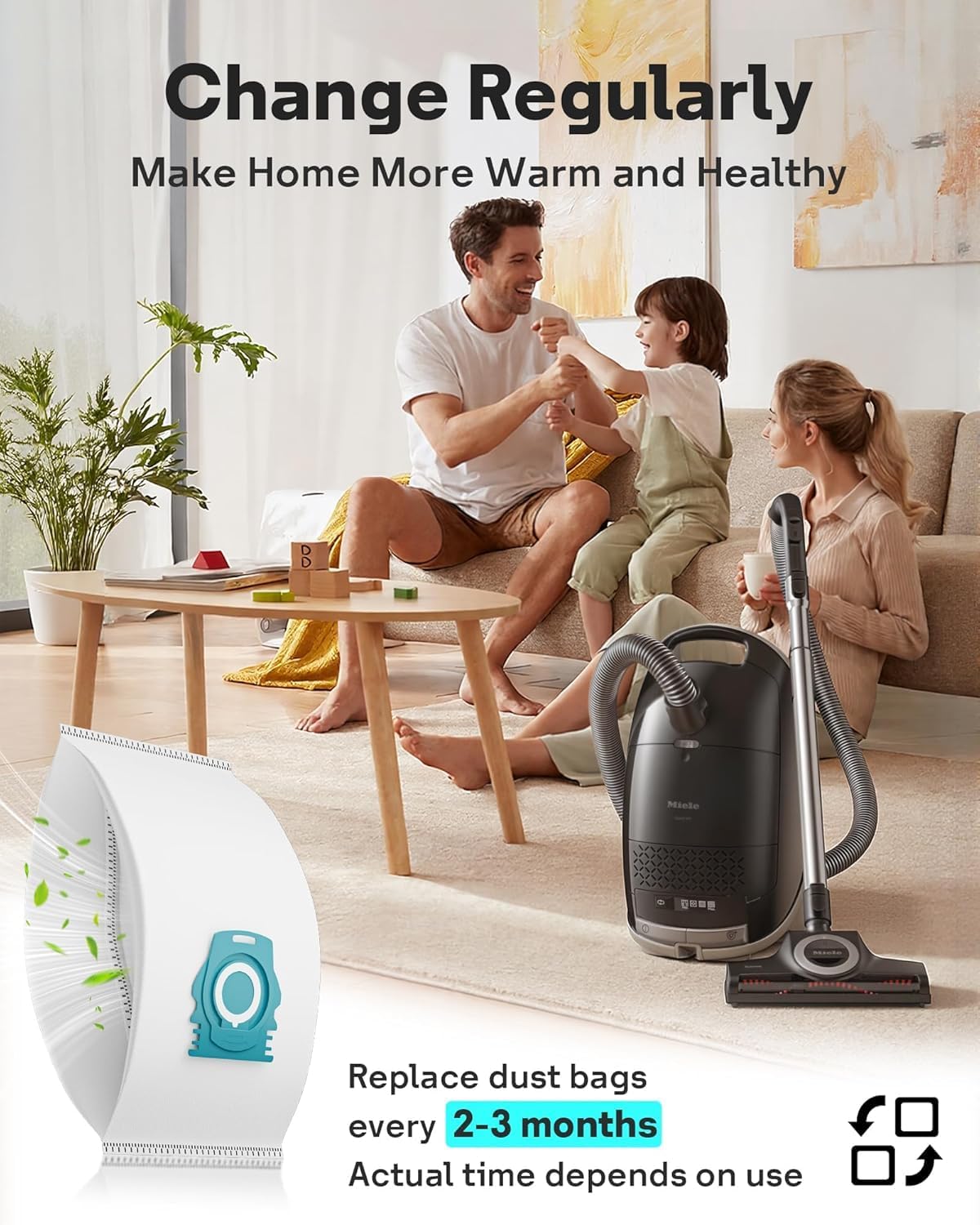 High-performance synthetic Vacuum dust Bags  designed to fit models that use the TU-type-HyClean Pure-Style bag connection system.